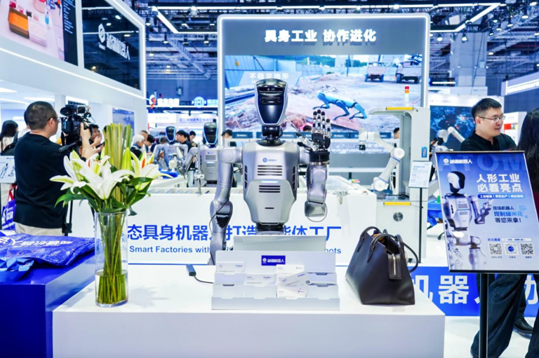 9 月的上海工博会现场,越疆的“超级工厂”展台被围得水泄不通:轮式机器人载着物料穿梭,双足人形机器人精准拧螺丝,机械臂同步完成视觉检测,多足机器人灵活翻越障碍 —— 这堆“形态各异的家伙”在“超级大脑”指挥下配合得天衣无缝,首次实现多形态具身机器人常态化协同作业。