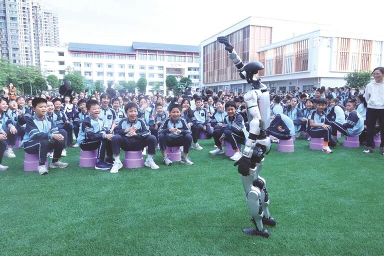 “哇!机器人会比心!” 南宁市国凯路小学的操场上,伴随着孩子们此起彼伏的惊呼声,春晚同款机器人刚完成一段灵动舞蹈——它关节灵活地转动,手臂跟着音乐节奏划出优美弧线,最后还俏皮地抬起 “手掌” 比出爱心形状,瞬间被围得水泄不通。孩子们眼神紧紧黏在机器人身上,这场气氛热烈的现场活动,成为学生心中科技的重要启蒙。