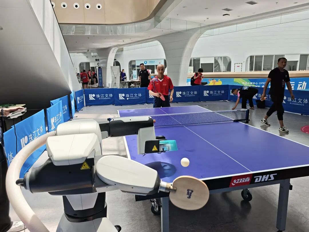 赛场旁科技体验区,配备的发球机器人成了 “乒乓猛将”。它静立蓝色球台边,机械臂蓄势待发,似沉默却有力的乒乓高手。选手挑战时,发球机精准送出旋转球、急长球等多样球路,机械臂配合快速移动回击,不管快攻还是削球,都从容应对。 白色小球在人机间穿梭,充满力量的轨迹化成一道优美的弧线,势均力敌的回合不禁让选手感慨科技赋能的乒乓对决,新鲜又惊奇,在里面能找到别样的乒乓乐趣。