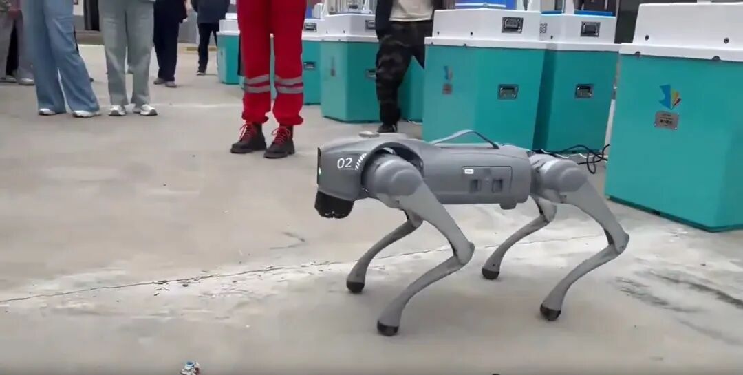 活动现场,机器狗一登场就炸场!它一会儿在原地蹦跶,一会儿突然 “站起来” 模仿人类跑步,金属关节灵活扭动,动作利落又带感。三年级的小鹏伸手摸机器狗 “爪子”,激动得直蹦:“它碰到我手会轻轻缩回去,像真的小狗一样!”