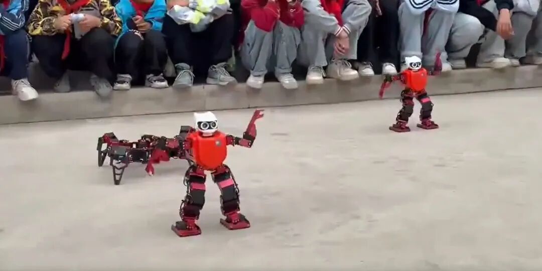 另一边,人形机器人也没闲着,跟着音乐节奏整齐舞蹈,手臂、膝盖灵活摆动,动作丝滑得像 “机械版舞者”。